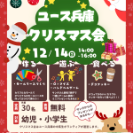 - ユースステーション兵庫 クリスマス会開催決定!!こんにちは! ユースステーション兵庫です。 さて、今年も中高生のメンバーで企画、運営する クリスマス会を開催します!! 日時 12月14日(日)14:00~16:00 場所 ユースステーション兵庫 対象 幼児・小学生 先 […]